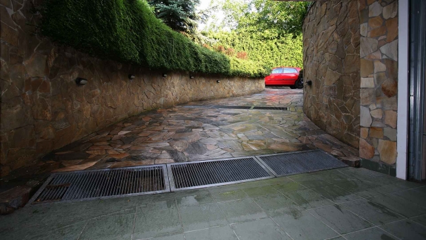 A kétállásos garázsba ez a gépkocsi lejáró vezet. A térvilágításon kívül a lehajtó, fűtéssel is rendelkezik, így a téli csapadék azonnal elolvad és száraz lesz a lejáró.