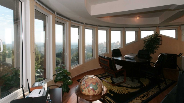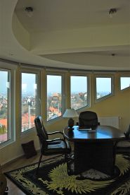A képen, a kb. 28,24 m2 alapterületű, panorámás dolgozó szoba látható.