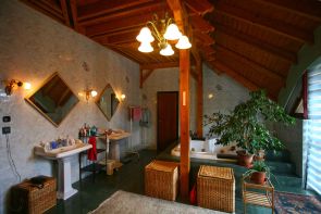 - Felületképzések: Az oldalfalak nagy része vakolt, festett. Vizes helyiségek falai, mennyezetig burkolt jó minőségű csempe. Padlók zöme gránit burkolat, szobákban parketta. Tetőtéri vízszintes és ferde felületek nút-féderes látszó deszkaburkolatok natúr színben.