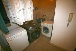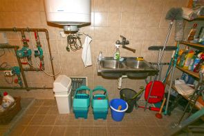 A kazánház másik felében került kialakításra a háztartási rész, itt lehet mosni, szárítani a ruhákat. A helyiség ezen részén elfér a mosó- és szárítógép is.